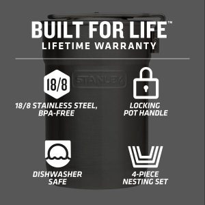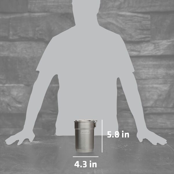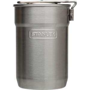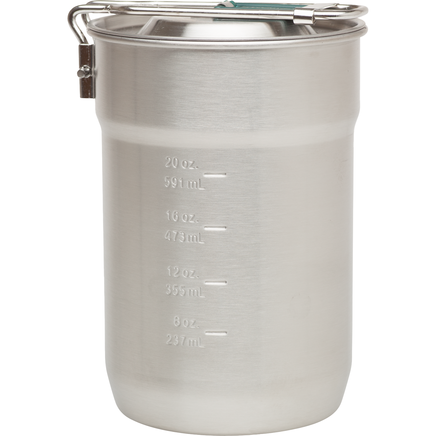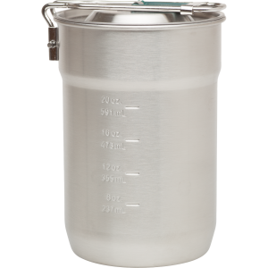 Enjoy delicious hot food straight from the campfire or camp stove with this tidy yet rugged cook kit. The stainless steel pot with locking handle is great for brewing coffee or heating soup. The vented lid even doubles as a strainer. When it’s time to eat. two insulated cups allow for sharing. To clean up. stack everything neatly inside to store. A slim profile means it can even fit inside your backpack webbing.
