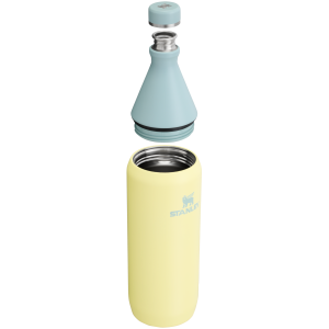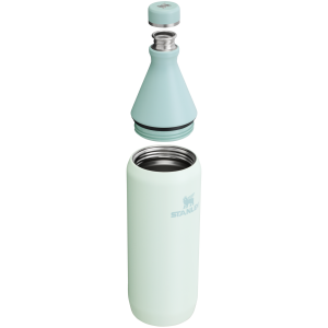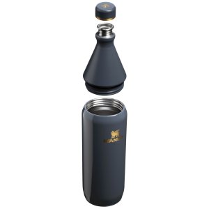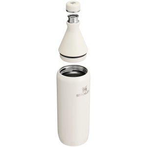 The 34-ounce All Day Slim Water Bottle is sustainable. if not slightly unexpected. Just give the collar a few twists to shut for a leakproof seal and uncap whenever you need a drink. Stainless steel construction provides ice-cold sips for hours. It can even hold an entire bottle of wine! Whether it lives next to your beach tote. or becomes your in-flight favorite. keep hydration simple.