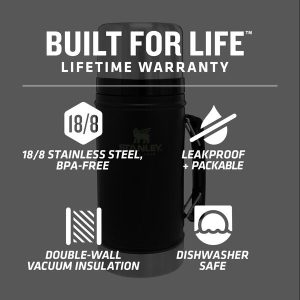 Keep your chicken soup hot. your gazpacho cold and enjoy it all down to the last bite. Our larger-sized food jar is fully insulated to keep everything at the ideal temperature. even hours after you pack it. This hot food thermos seals tight so you don’t need to worry about leaks. and the wide mouth makes it easy to clean. There’s even a folding handle for grab-and-go.