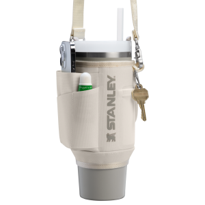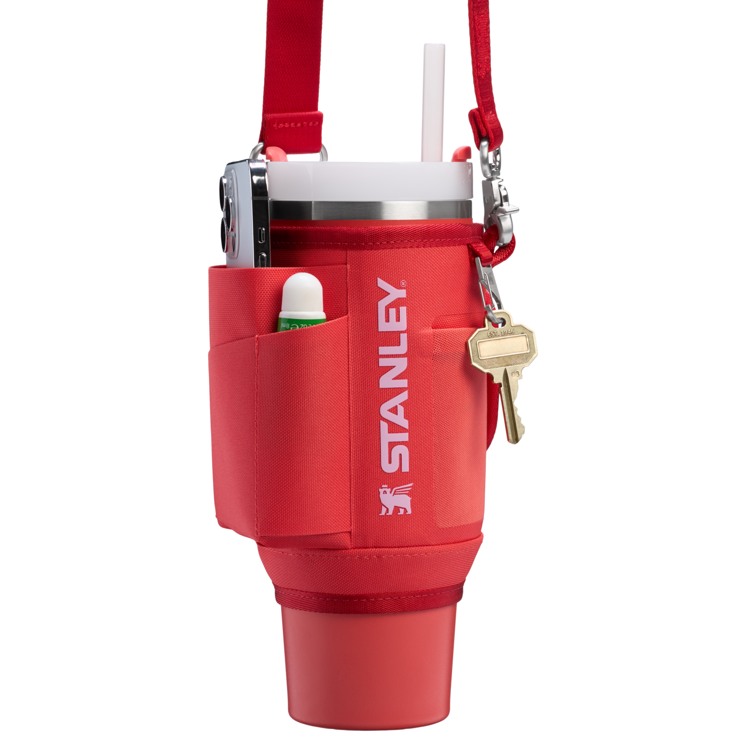 With three pockets. one is spacious enough to hold your phone while the second pocket below stores a slim wallet or card sleeve. A smaller mesh pocket holds compact headphones. lip balm. or the small extras you can’t live without. Thoughtful design means a dedicated sleeve to hold onto your sunglasses. and a clip for your keys. Wherever the good times take you. move freely and stay hydrated with Stanley 1913’s water bottle holder with a strap.