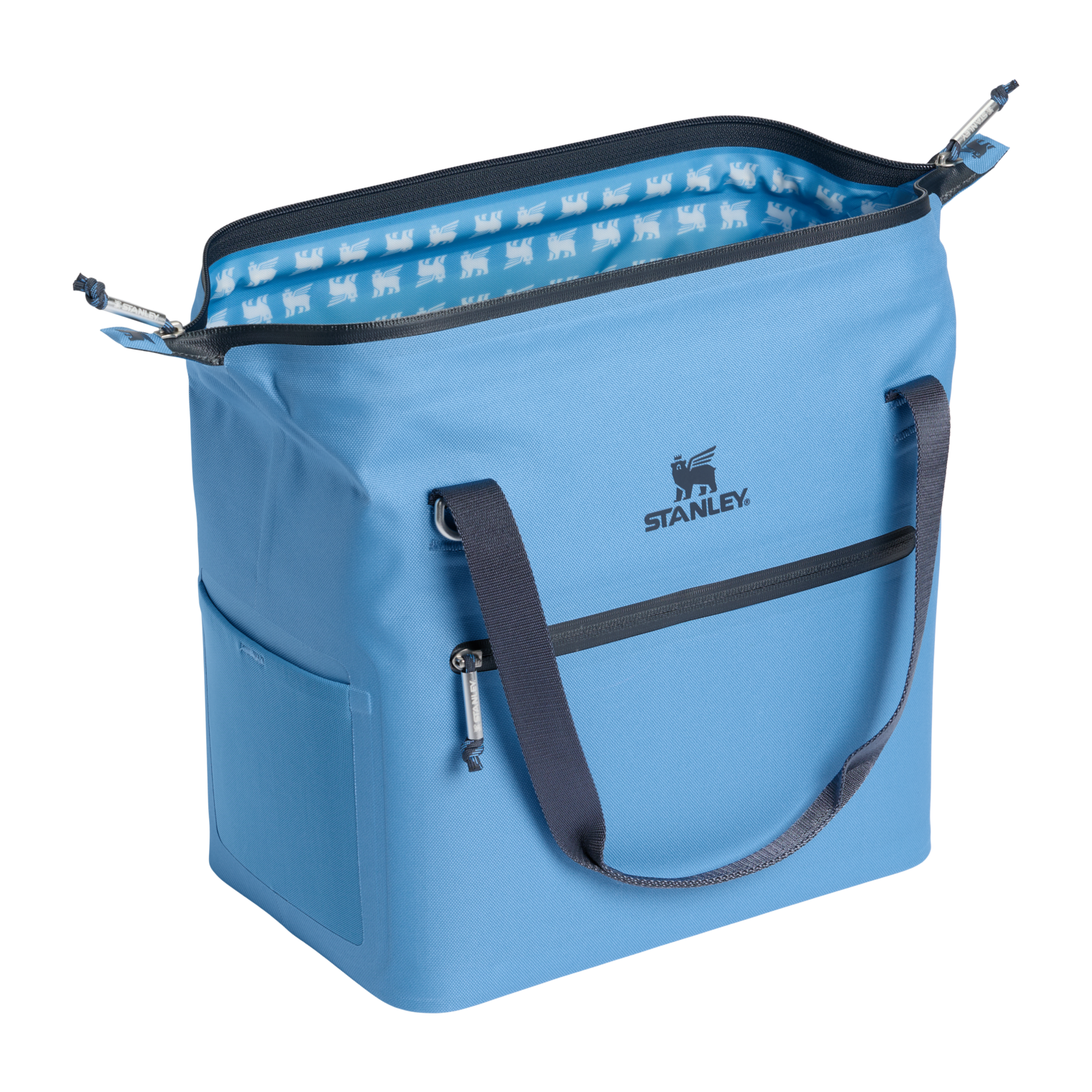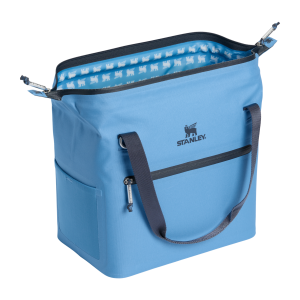 The unique doctor’s bag hinge top pops open to help with unpacking. Load up with reusable ice packs. pop it shut and the sturdy zipper keeps things safely stored. The snap-top handles have a comfortable grip. while a zippered pocket protects your valuables. There’s also the option to attach the strap to sling the cooler over your shoulder. From acai bowls to charcuterie. sparkling beverages and wine are ready to be enjoyed. Don’t forget to pack all your favorite snacks and drinks in Stanley style.