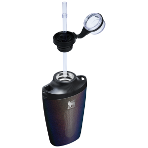 The 23-ounce Stanley Cross Bottle makes it easy to hydrate on the go with softer landings. a tethered lid cover. and a durable jacquard strap. Spin the lid off along the hinge to fill. and twist it shut for a leakproof seal. Just undo the cap to reveal the removable straw. and twist it back to protect your sip space.