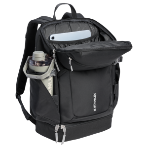 The Vitalize⢠Backpack is made to carry it all easily. Slide your 40-ounce Quencher® ProTour Vitalize⢠Shaker into the Tumbler Securing Belt and Pocket for locked-in carry. The zippered front pocket holds your keys. wallet and phone. Inside the large zippered main compartment your laptop has its own sleeve. plus plenty of room for a jacket or change of clothes. The zippered. multi-function bottom compartment grows upward to hold food containers. shoes. post-workout clothes and more. Grab the easy-carry top handle or sling the padded backpack straps on and get started.