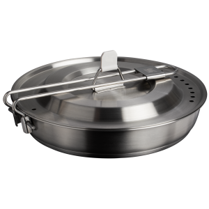 The 15-piece Wildfare Pro Fry Pan Cookset gives you the chef-level tools to cook a deluxe dinner for two in the wild. Made of tri-ply bonded stainless steel. the fry pan distributes even heat for precise searing. while the vented lid doubles as a strainer. This versatile frying pan set also includes two powder coated plates and cutlery sets are included. Packed for efficiency. a nonslip cutting board with a removable trivet and folding spatula nest together. so you can cook delicious meals outdoors with a complete. portable frying pan set ready for any adventure.